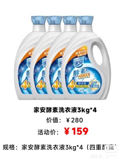 物品名稱及描述:家安酵素洗衣液,陽(yáng)光凈菌款,3kg/桶,4桶/箱!