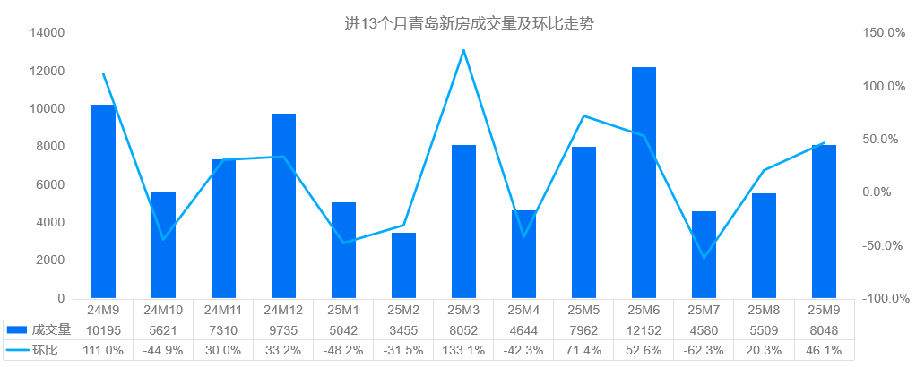 9月青島新房成交8048套,環(huán)比上漲46.1%