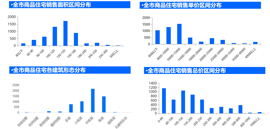 9月青島新建住宅首改需求明顯。從面積來看,120㎡-150㎡住宅成交量最高;從單價來看,成交單價段集中于10000-15000元/㎡;從建筑形態(tài)來看,中高層成交表現(xiàn)較優(yōu);總價方面,0-80萬元以及100萬-150萬以內總價段住宅成交量較高。