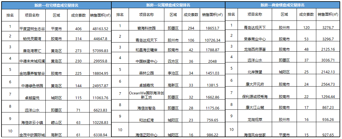 單盤熱度方面,平度藍樹生態(tài)谷商品住宅成交首位;碧?萍紙@居公寓項目首位;青島達觀天下局商業(yè)樓盤成交量首位。