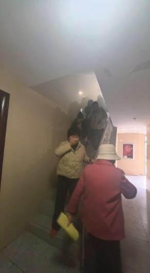 最后開(kāi)展的是模擬疏散通道逃生環(huán)節(jié)。隨著“火情警報(bào)”響起,模擬居民樓著火場(chǎng)景正式啟動(dòng)。在物業(yè)工作人員的引導(dǎo)下,居民們用濕毛巾捂住口鼻,彎腰低姿,沿著預(yù)定疏散路線快速、有序地撤離至安全區(qū)域。整個(gè)逃生過(guò)程緊張有序,大家嚴(yán)格遵循逃生規(guī)范,展現(xiàn)了良好的應(yīng)急反應(yīng)能力。隨后,消防員迅速啟動(dòng)滅火處置程序,熟練操作消防設(shè)備對(duì)著火點(diǎn)進(jìn)行模擬撲救,專業(yè)的處置流程讓居民真切感受到消防救援的速度與力量。