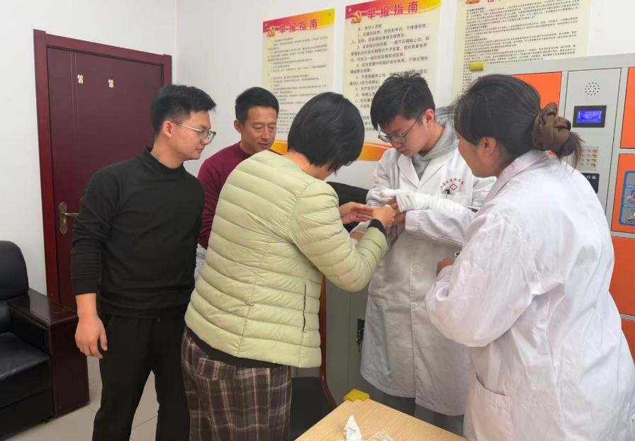 實操環(huán)節(jié)中,衛(wèi)生院醫(yī)護人員以模擬傷口為教具,手把手指導學員運用紗布、繃帶進行操作,及時糾正“包扎過緊影響血運”“打結(jié)位置不當”等問題。紀工委工作人員分別演練、相互糾錯,現(xiàn)場互動頻繁,迅速掌握了標準化操作要領(lǐng)!耙酝龅酵话l(fā)外傷常手足無措,現(xiàn)在學會了規(guī)范處置方法,履職更有底氣!奔o工委工作人員表示。