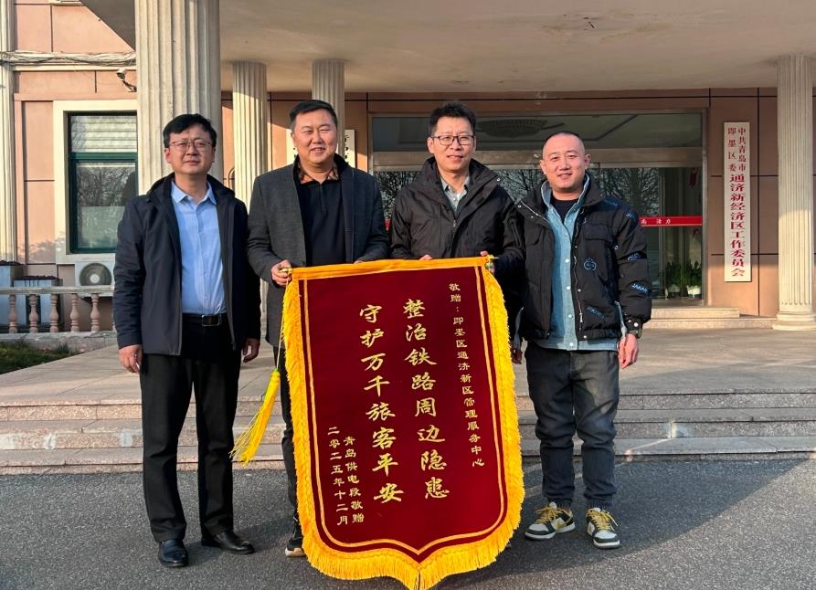 2025年以來,即墨區(qū)通濟(jì)新區(qū)與中國鐵路濟(jì)南局集團(tuán)有限公司青島供電段不斷加強(qiáng)溝通,在青榮城際鐵路沿線整治工作中密切協(xié)作,改善了鐵路沿線周邊環(huán)境。近日,中國鐵路濟(jì)南局集團(tuán)有限公司青島供電段將一面“整治鐵路周邊隱患 守護(hù)萬千旅客平安”的錦旗送給通濟(jì)新區(qū),對(duì)過去一年來新區(qū)在青榮城際鐵路沿線環(huán)境治理中的積極貢獻(xiàn)表示感謝,通濟(jì)新區(qū)也向鐵路方對(duì)新區(qū)工作的配合與支持表示感謝。