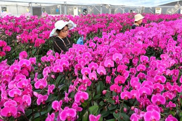 1月25日,花農(nóng)在青島市即墨區(qū)靈山花卉文化產(chǎn)業(yè)園管護(hù)花卉。 春節(jié)臨近,山東省青島市即墨區(qū)靈山花卉文化產(chǎn)業(yè)園的年宵花迎來(lái)生產(chǎn)和銷售旺季,花卉大棚內(nèi)的蝴蝶蘭、長(zhǎng)壽花、仙客來(lái)等競(jìng)相綻放,花農(nóng)們按照訂單外運(yùn)各類花卉,供應(yīng)節(jié)日市場(chǎng)。 新華社發(fā)(張光明攝)