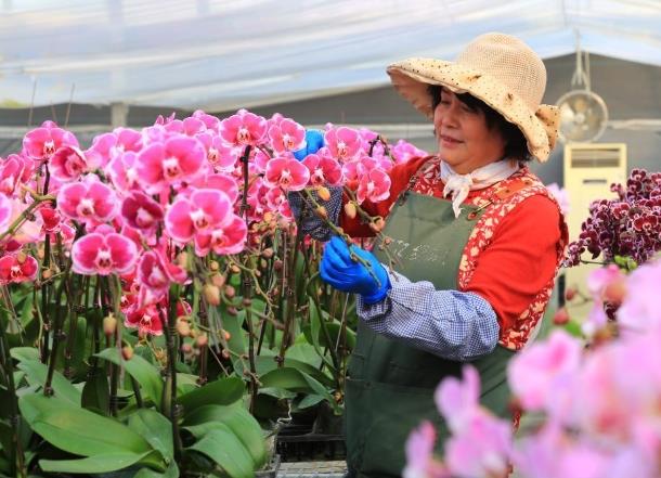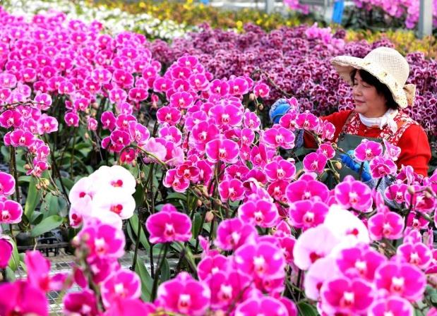 1月25日,花農(nóng)在青島市即墨區(qū)靈山花卉文化產(chǎn)業(yè)園管護(hù)花卉。 春節(jié)臨近,山東省青島市即墨區(qū)靈山花卉文化產(chǎn)業(yè)園的年宵花迎來(lái)生產(chǎn)和銷售旺季,花卉大棚內(nèi)的蝴蝶蘭、長(zhǎng)壽花、仙客來(lái)等競(jìng)相綻放,花農(nóng)們按照訂單外運(yùn)各類花卉,供應(yīng)節(jié)日市場(chǎng)。