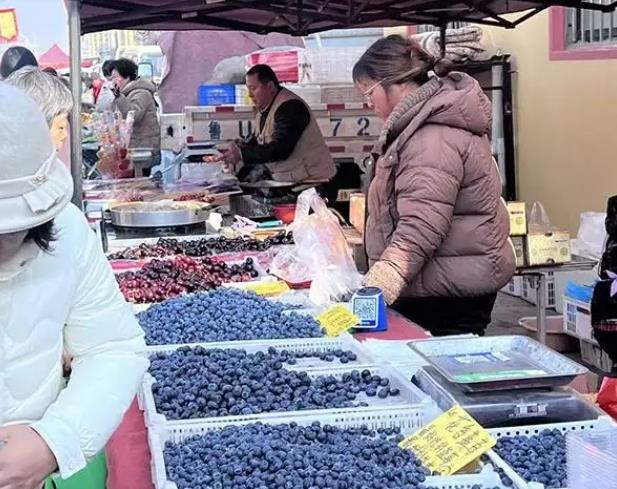 水果攤前色彩繽紛,砂糖橘、車?yán)遄、藍(lán)莓堆成小山,本地草莓帶著露珠,吸引顧客駐足嘗鮮。